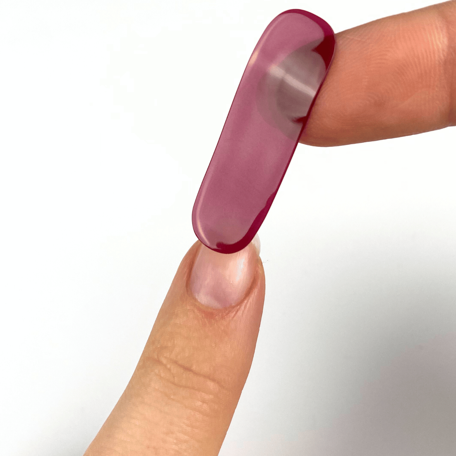 Klebe den UV Gel Streifen mittig auf deinen Nagel auf. Beachte bitte, dass du die UV Gel Streifen nicht auf die Nagelhaut klebst. Du kannst die UV Nagelfolien auch dehnen und ziehen, um sie perfekt an deine Nagelform anzupassen.