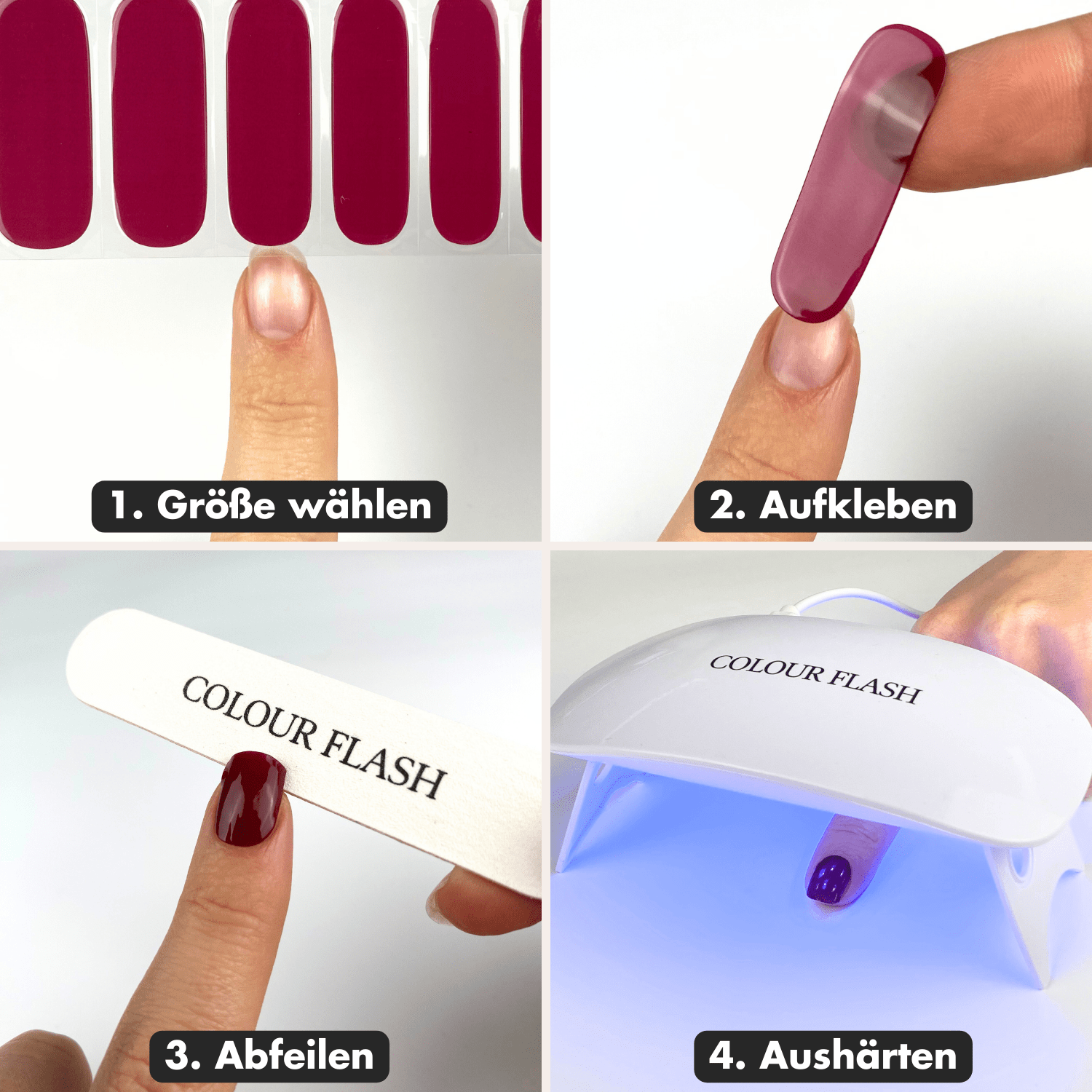 Die UV Gel Nagelfolien von Colour Flash sind im Hand umdrehen aufgebracht!