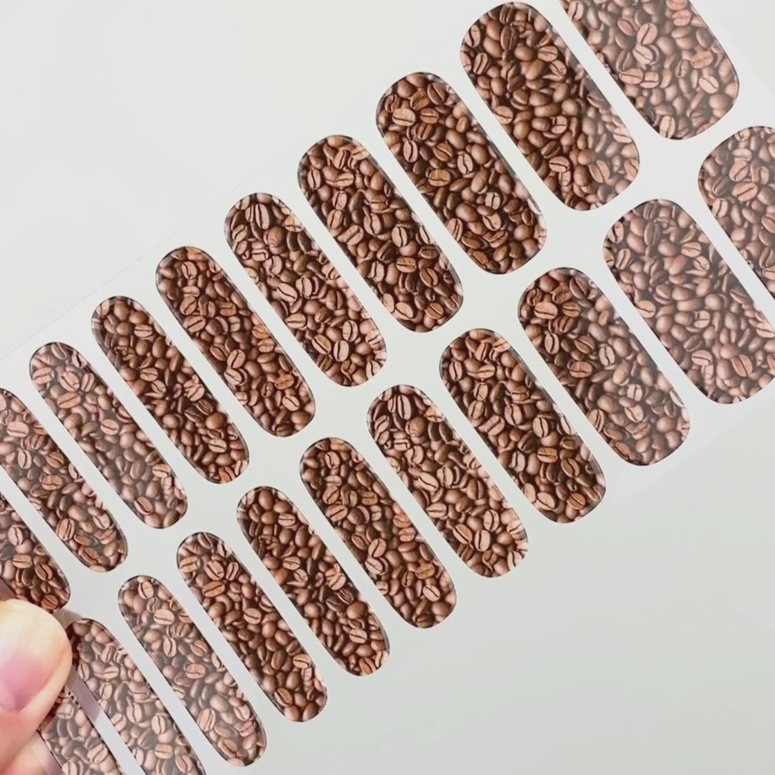 „Espresso Treasure“ ist Bestandteil der UV Gel Kollektion. Dieses niedliche Design zeigt kleine, satte Espressobohnen. Es sieht auf jedem Hautton toll aus und passt zu nahezu jedem Anlass.