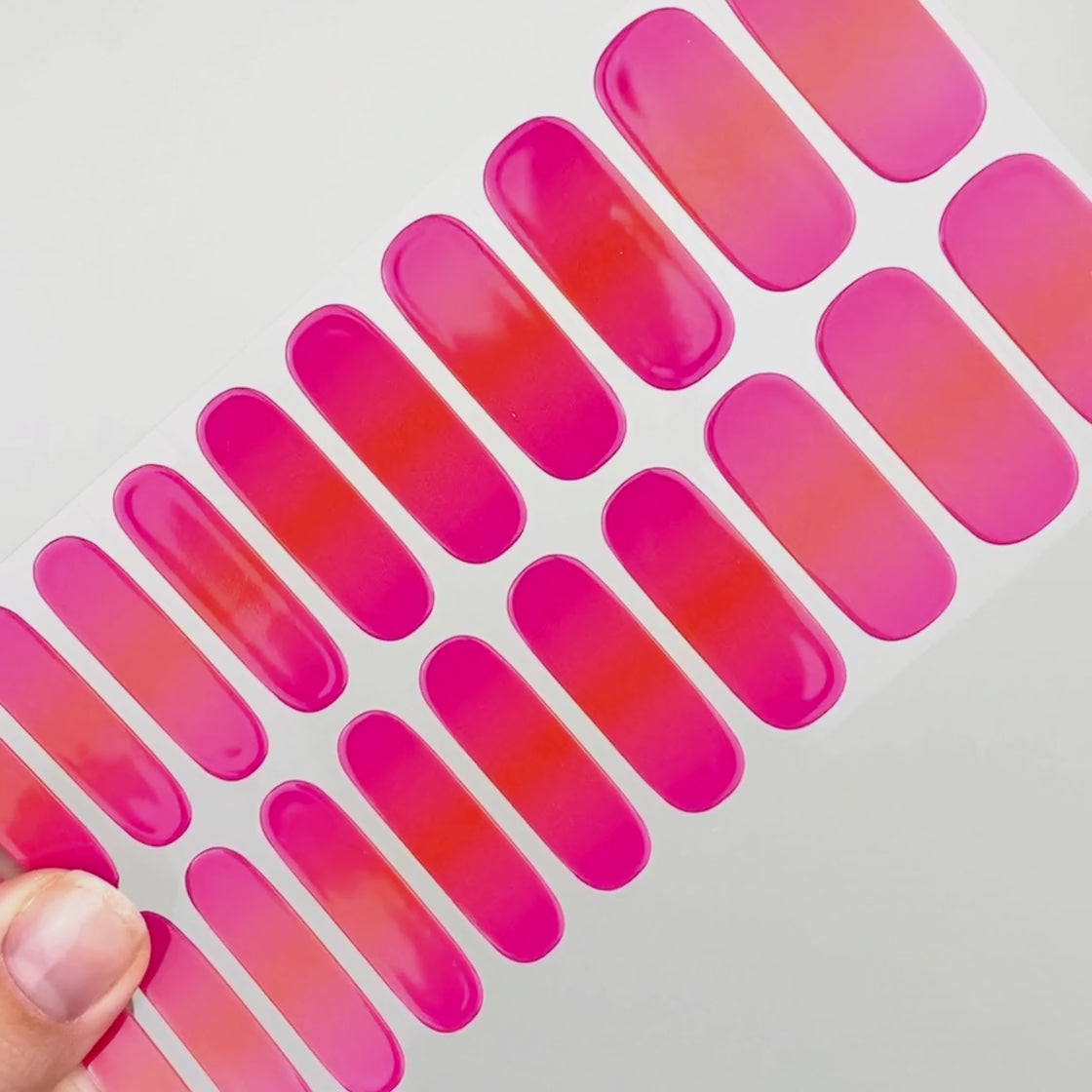 „Hot Ombré“ ist Bestandteil der UV Gel Kollektion. Dieses auffällige Design zeigt einen Farbverlauf von Pink zu Rot. Diese atemberaubende Kreation sieht auf jedem Hautton schön aus und passt zu nahezu jedem Anlass.