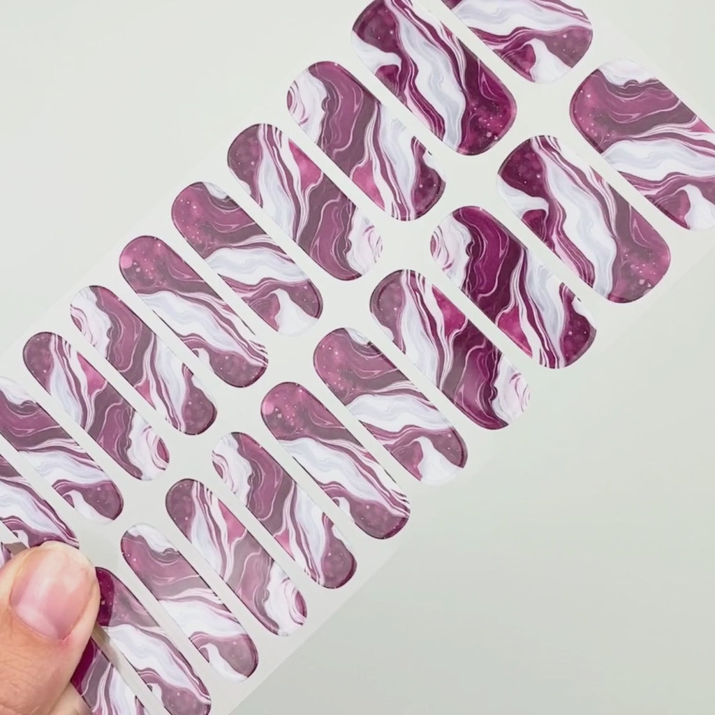 „Raspberry Marble“ ist Bestandteil der UV Gel Kollektion. Dieses prachtvolle Design zeigt eine lilafarbene Marmor-Kreation, die mit weißen und grauen Fissuren akzentuiert ist. Diese atemberaubende Kreation sieht auf jedem Hautton wunderschön aus und passt zu nahezu jedem Anlass.