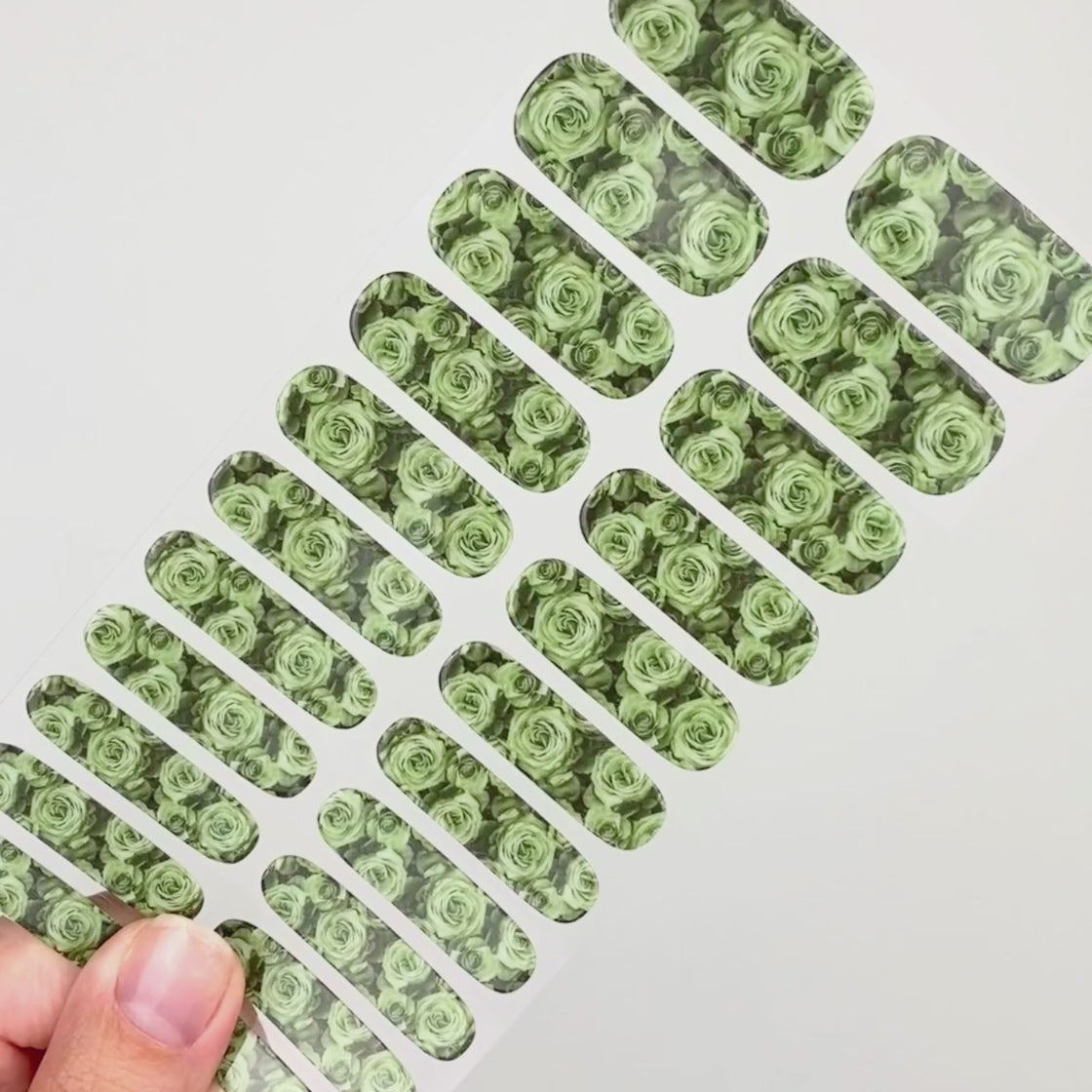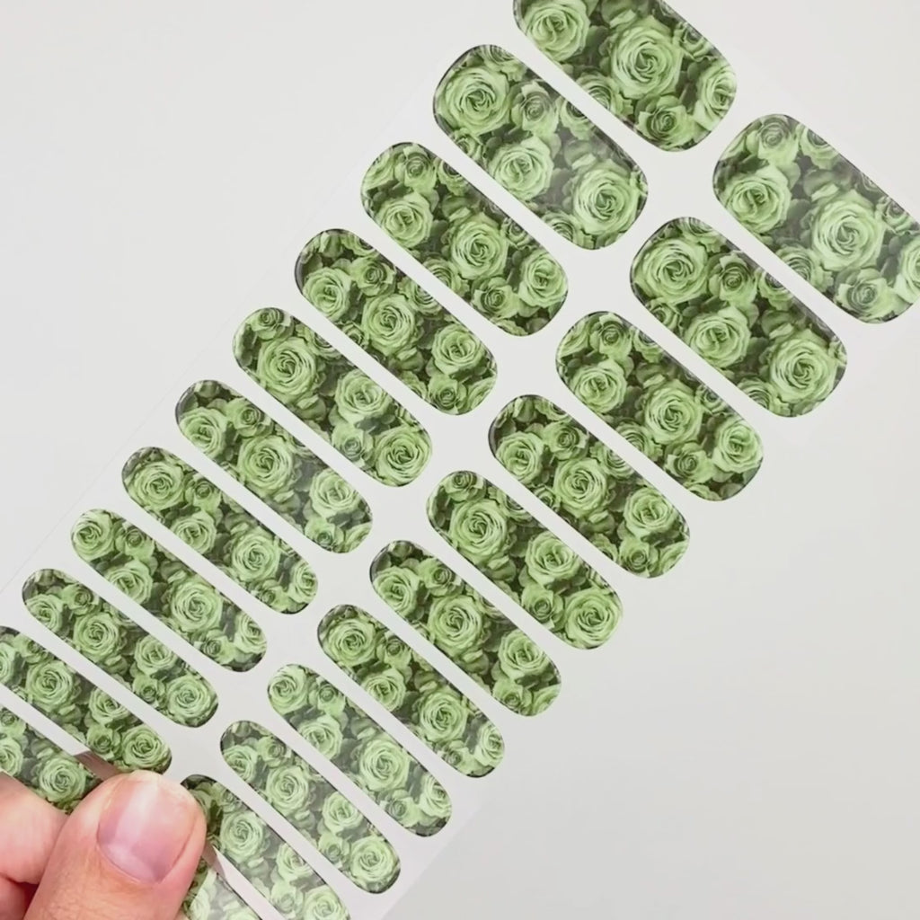 „Sage Rose“ ist Bestandteil der UV Gel Kollektion. Diese zarte Kreation zeigt salbeifarbene Rosen. Diese atemberaubende Kreation sieht auf jedem Hautton wunderschön aus und passt zu nahezu jedem Anlass.